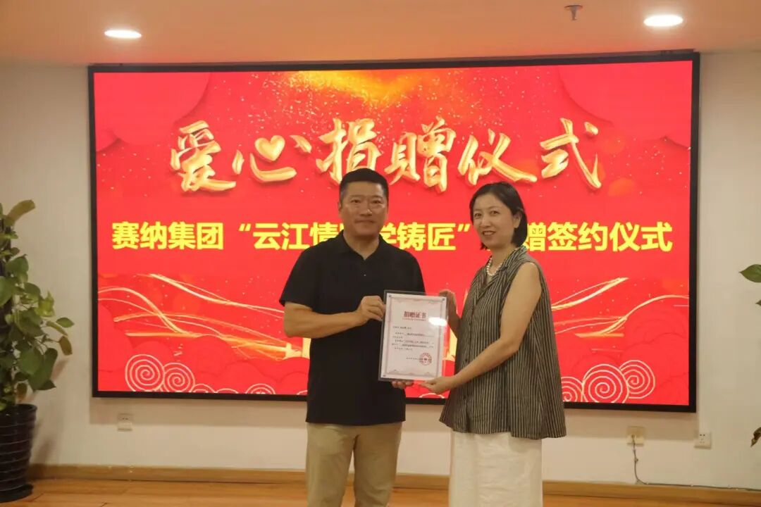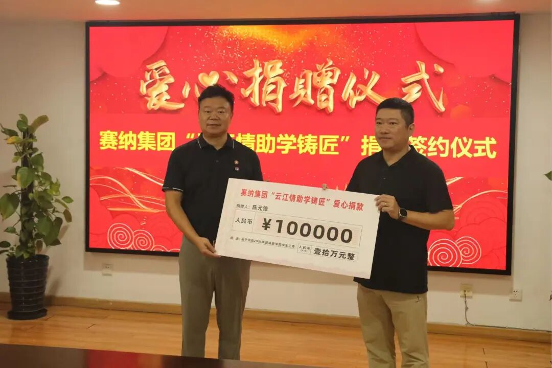 在现场师生的共同见证下,捐赠仪式正式举行,温州职业技术学院瑞安学院、瑞安市慈善总会、赛纳集团有限公司代表共同签署“云江情·助学铸匠”捐赠协议。此次捐赠的不仅是物资与资金,更承载着企业与社会公益组织对职业教育的重视、对技能人才的期许。同时,为瑞安学院的学子们铺就了一条充满希望的求学与成长之路。